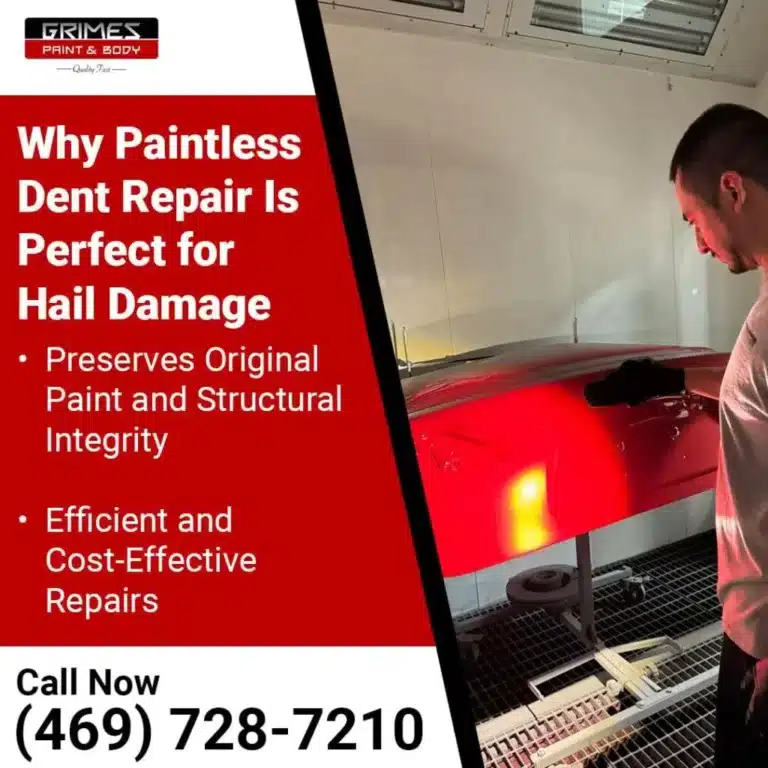Hailstorms are a common challenge for vehicle owners in Forney, TX, often leaving behind dents that affect both appearance and safety. Grimes Paint & Body specializes in paintless dent repair (PDR), providing a reliable and efficient solution for hail damage. Unlike traditional repairs, paintless auto dent repair preserves your vehicle’s original paint and manufacturer standards, offering a safer and cost-effective alternative. Knowing the benefits and costs of PDR is necessary for Texas drivers looking to restore their vehicles without compromising quality. Here, we’ll explore why paintless dent repair is the best option for hail damage and how Grimes Paint & Body prioritizes safe, high-quality repairs tailored to customer needs.